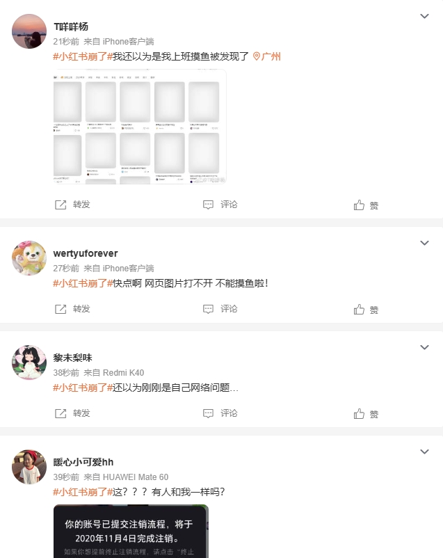 小红书崩了