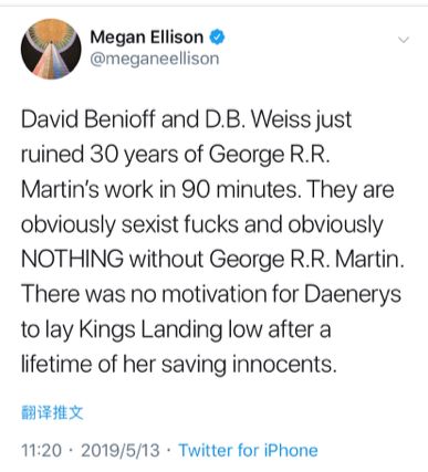 看完“龙妈”黑化屠城,梅根在推特上大骂《权游》编剧